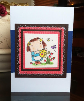 For this card, I used the Betsy Bluebell stamp set by Penny Black. I just adore these stamps! The image was coloured using water crayons and blender pen.