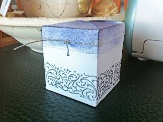 I used whisper white cardstock, embossed the image onto the box and used Concord Crush ink to sponge on the lid and rim.