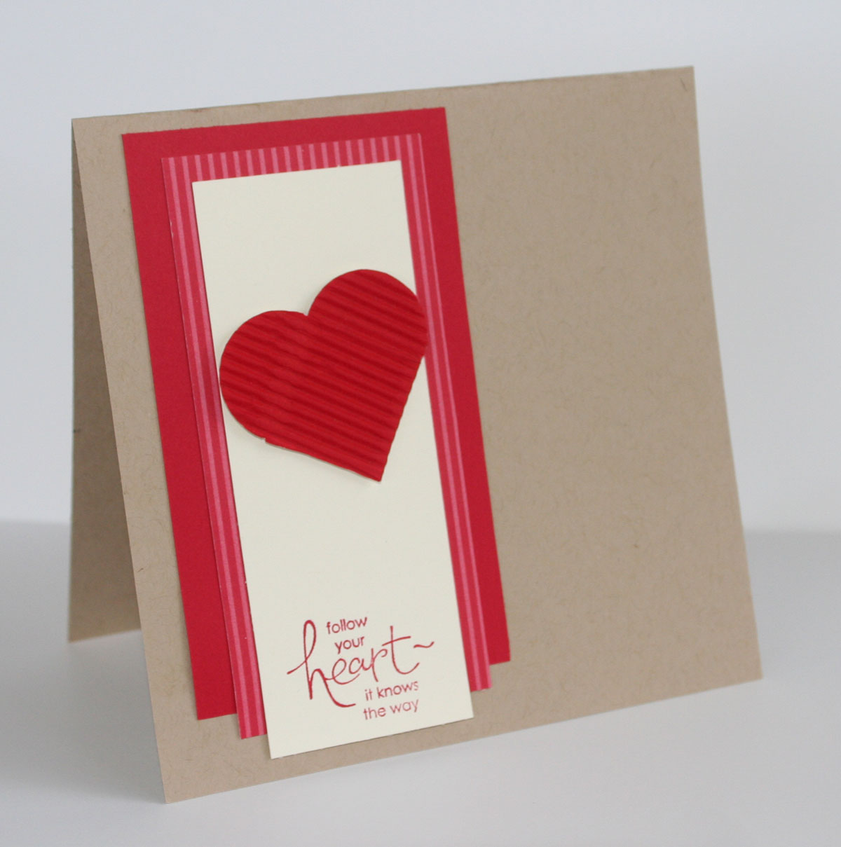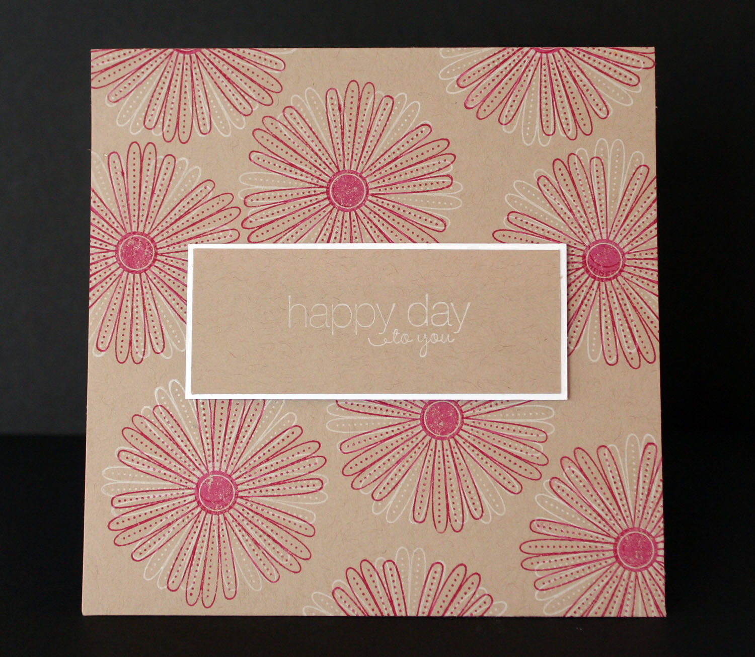 I tried a new technique called Ghost Stamping. This is a great technique for light or dark Kraft paper. I used my Mixed Bunch stamp and inked it up with Whisper White and just stamped directly onto my cardstock. I then inked it up with Rose Red and stamped over the top but just off centre a little. I think it has turned out really pretty.