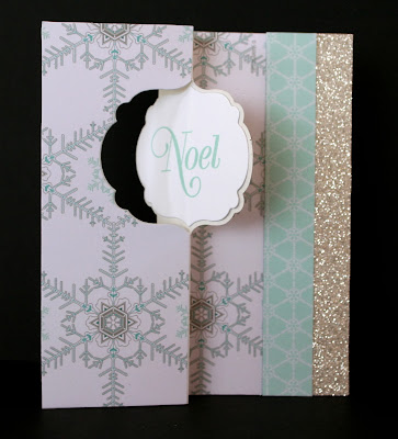 I have used my new Thinlits Label Card die. These flip cards are quite cool. I'm not sure I have got my head around them yet but I will keep practising. I actually thought I had ordered the circle die but no, I ordered the label one. Nevermind, this die is still cool. I have used the Winter Frost DSP stack to decorate and a strip of Silver Glimmer Paper.