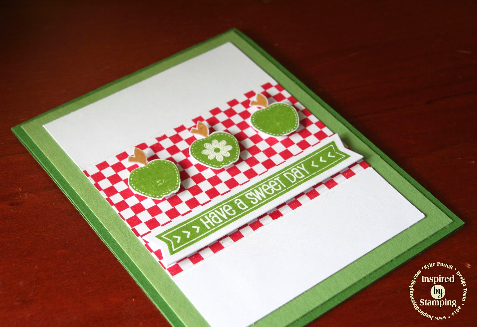I stamped my apples and fussy cut them out. The middle apple has an embossed flower (from the same set).