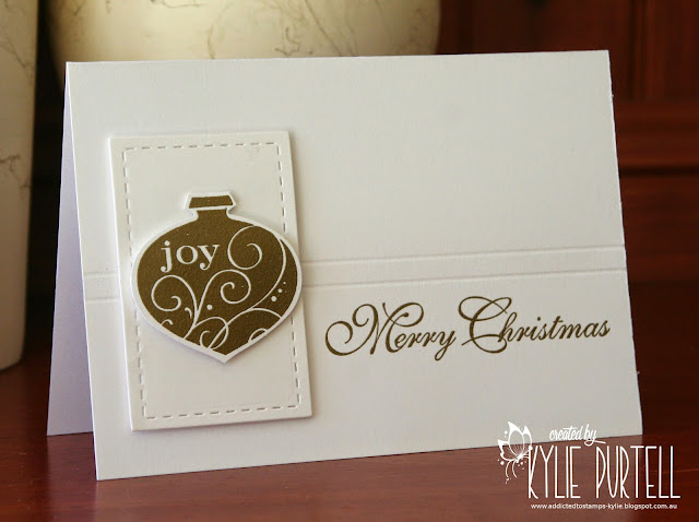 I have stamped them with versamark ink and embossed with gold powder. A gold sequin was all that was needed to decorate these trees.