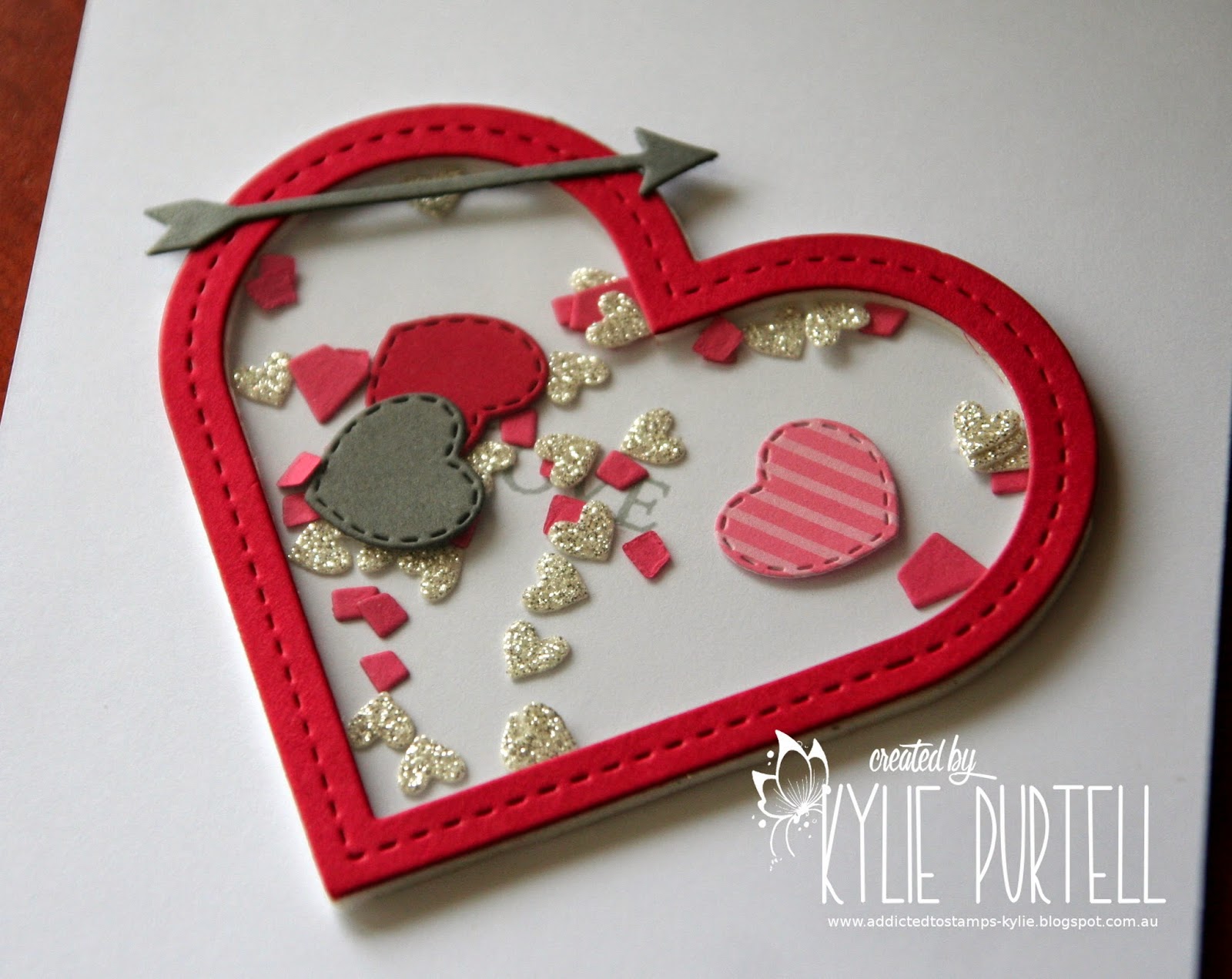 I used the heart die from my PTI Shakers and Sprinkles kit to create my shaker element. I used one of the confetti dies as a filler and three little heart dies from Lil' Inkers
