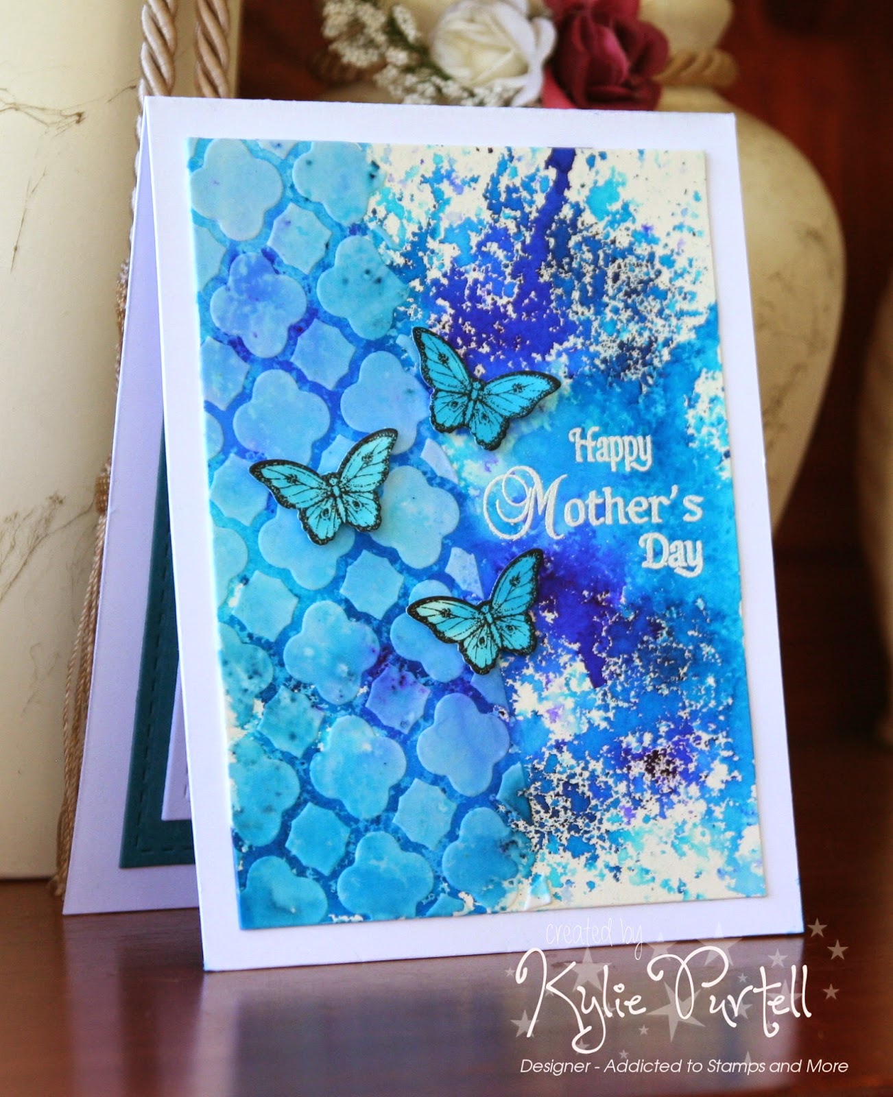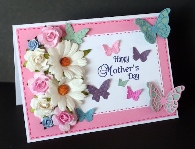 I took a 'little' liberty with our theme this week. I created a Mothers Day card. While it isn't a celebrated National holiday per say, I think that on Mothers Day we should be having a holiday from all things domestic!! No laundry, no washing up, no vacuuming (the list goes on!).
