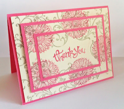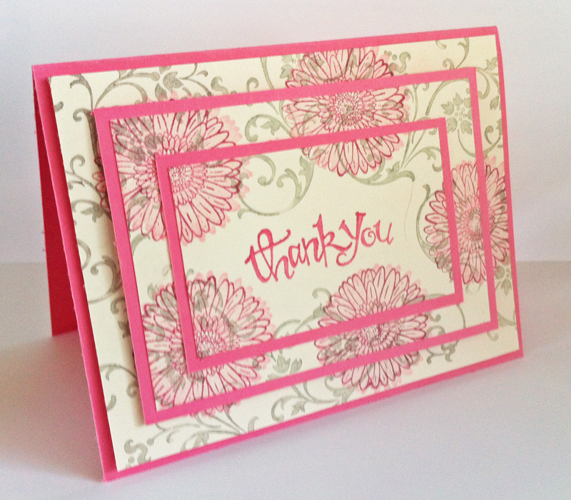 In between everything that has been happening I managed to make my mum her birthday card. I have used the Triple Time Stamping technique and used my Growing Green set in Poppy Parade and Concord Crush.